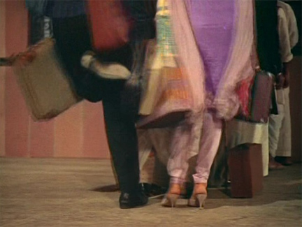 The shot of him walking towards the ticket booth in the train station at the beginning of Teesri Manzil; his footwork is just amazing (and in fact impossible to capture in a screen shot but I did my best):