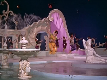 The men (except Anand) distract themselves by flirting with Miss Kitty and posturing to each other. Mehmood fantasizes about Kitty in the fantastic song “Hum Kale Hain To Kya Hua”—one of Helen’s all-time great dances (deserving many screen shots) (and she has two more songs besides!):