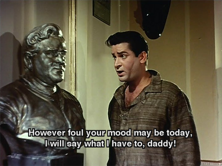 This naturally makes Mahendra somewhat reticent and timid with his father. In contrast to his treatment of Mahendra, Srivistava dotes on Sunder and praises him to the skies. Of course (being Shammi) Sunder is a happy-go-lucky kind of fellow; he doesn’t work hard at all except at tennis and having a good time. His best friend is Chintu (Rajendranath), whose father is not wealthy. Sunder is also close to Mahendra, and understands what his father is like.