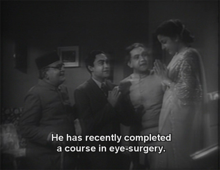 It’s certainly true that her brother isn’t too useful. Dr. Kishore and Kaviraj bond over the fact that they are both in love, little knowing that they both love the same girl. True to his word, Kishore restores Kaviraj’s sight.