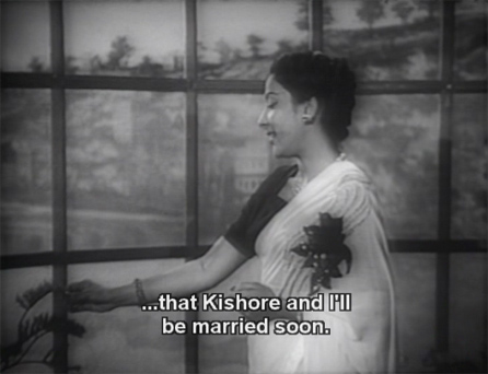 Kishore says he will take Kaviraj to see her, but asks him not to remind her of their childhood, and Kaviraj agrees. Unwitting Mala invites him to stay at her house; she has arranged a gathering so he can sing. Over the next few days (or weeks, it seemed endless) we watch as Kishore becomes ever more tormented, and Kaviraj ever more obsessed with Mala, who remains stubbornly oblivious—even when Kaviraj sings their childhood song to her.