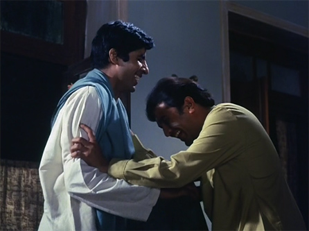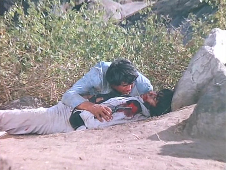 4. Vinod and Amitbah in Muqaddar ka Sikandar. I’m surprised this didn’t make your cut, Memsaab! But I guess Muqaddar is the downerest downers in the history of forever. So not really good for buddying. And indeed V and A’s friendship is all spikey with love triangles, but the finale – when Vinod cradles Amitabh in his arms and sings, “Zindagi to bevafa hai…” The PPCC. Guh. We just cries and cries.