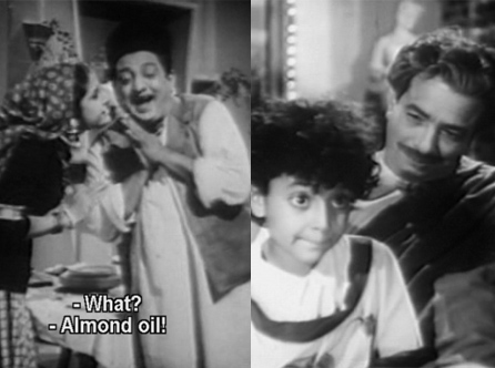 Karuna is welcomed into the Das family bosom. It’s a warm and bustling household: the married servants Gopal and Gopi (Bhagwan and Shammi) bicker constantly; Sharad and Kamla’s brother little Munna (Daisy Irani) is mischievous; father-in-law Barrister Mohan Das (Nasir Hussain) is kind; and of course now-sisters Karuna and Kamla are fast friends.