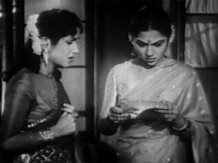 The film begins on her wedding day; she plays Karuna, who is marrying a CID inspector, Sharad Das (Ashok Kumar). Sharad’s sister Kamla (Purnima) is a close friend of Karuna’s and has arrived to help her get dressed for the big event. Kamla is distressed to see a man delivering a letter through the window of Karuna’s room. It is from an unscrupulous character named Ramesh (Iftekhar) with whom she had had an affair before her marriage to an army Captain (Jagdish Raj).
