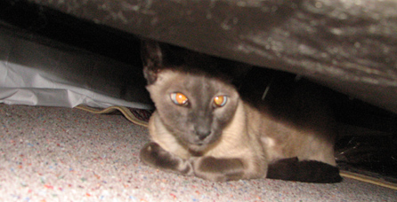 A friend’s…he’s lovely, but refuses to come out from under my bed…Gemma is just crazed. She wants a go at his food in the worst way.