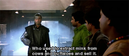 The majority of movies naturally have subtitles which fall in the middle somewhere between excellent and horrible. That middle ground is quite vast and it’s full of potholes. Sometimes subtitles miss the mark in an extremely funny way. There is no way I can stop myself from laughing and wanting to share it, but condescension is not my intent. It’s just funny! and part of the charm of Hindi films for me.