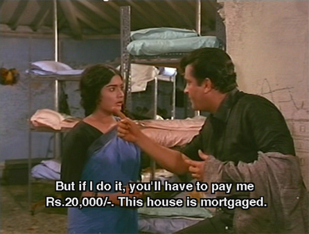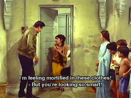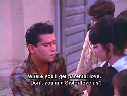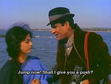 Stung by his seeming indifference, the girl follows him back onto the beach and he takes her home with him. The children welcome her as Didi, and ask why she wants to kill herself. She says that her name is Sheetal and that she’s been engaged since childhood to Ravi (Pran) who moved to the city and became wealthy. She has loved him her whole life, and came to the city to find him. He has scorned her, and heartbroken, she sees no option but suicide (*le sigh*).