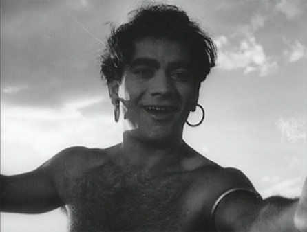 Aspaan is our winner; he went all out to improve the contrast of this image (taken directly from the DVD, which was dark I admit but I am lazy) and recognized Premnath in the song “Naiyya Teri Mazdhar” from the film Awara (1951). He’s not mentioned in the credits of the film but is distinctly recognizable. I love his earrings and his armband. Sexy!