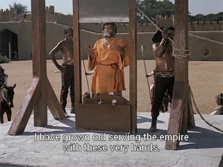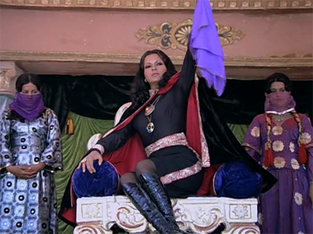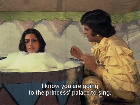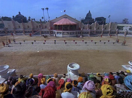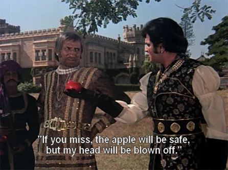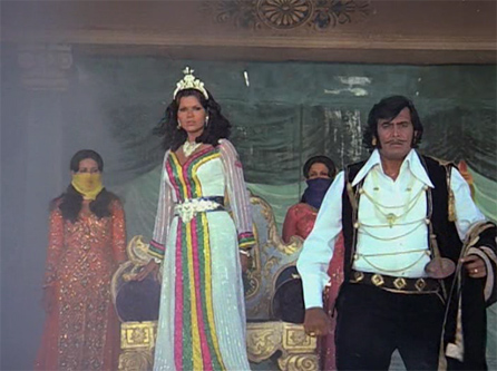 Later, they go to a jousting tournament that haughty Rajkumari Pallavi (Zeenat Aman) is hosting. We’ve now gone from European medieval to what appears to be a Bedouin desert-type palace, and is that the Washington Capitol building I see on the right?