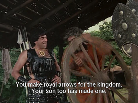 He is giving this arrow to his best friend on their shared birthday the next day. At the palace, Rajkumar Veer (Jeetendra) is using his doting uncle as target practice.