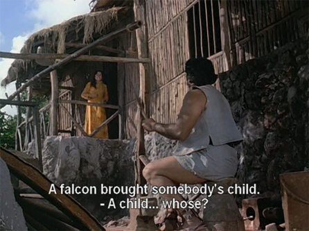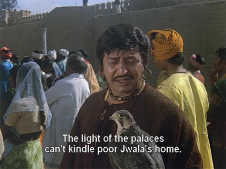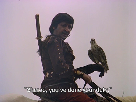 The princess of a Rajput kingdom, Meenakshi (Indrani Mukherjee), is out hunting one day when she is set upon by villains sent by her jealous brother Satpal Singh (Jeevan). An astrologer has predicted that Meenakshi’s eldest son will kill Satpal, and he’s taking no chances. A passing hunter and Samurai expert named Jwala (Pran) rescues her with the help of his falcon, Sheroo the Wonder Bird.