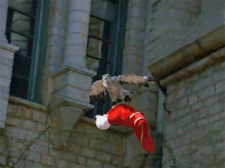 Satpal Singh sneaks in, snatches his nephew up and throws him off the castle parapet. Sheroo the Wonder Bird catches him before he hits the ground and flies off with him to the forest.
