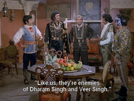 Oh! the angst! the broken hearts! the seething villainy! the costume confusion! Dharam’s leather pants!!!! His father’s Star Wars outfit!
