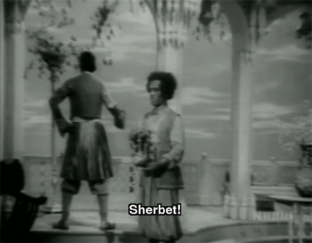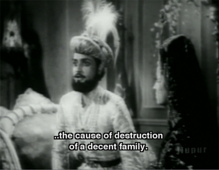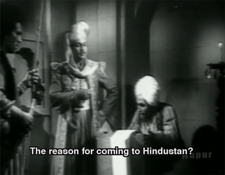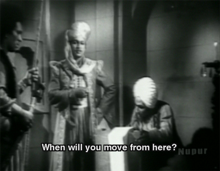 I wanted to watch this film for two reasons: because it features the legendary actor and singer K.L. Saigal, whom I’ve never seen; and because Shahjehan is played by one of my favorite actors, Rehman*, in what imdb lists as his first film. I was disappointed on both counts. K.L. Saigal didn’t have much to do except sing a bunch of songs with his arms outstretched: