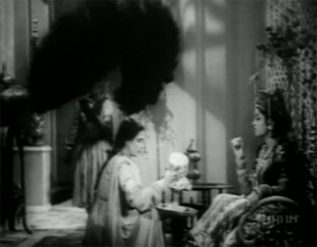 Mumtaz’s favorite court singer Jafiza (Sulochana Chatterjee) is afraid that Shahjehan will cheat on Mumtaz when he sees Ruhi’s great beauty (and she says so endlessly, and ruins several lives through her paranoid machinations). This is Mumtaz.