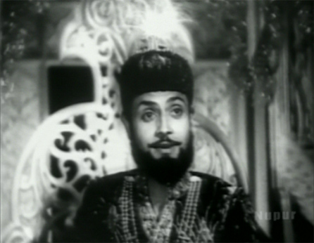 Occasionally he stumbled as though drunk, which he probably was (this was his next to last film, and he died of alcoholism in 1947). The songs for the most part were pretty though, composed by Naushad.