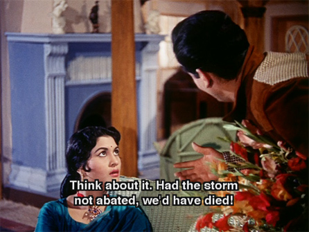 They get caught in the storm and find shelter in a cabin. As the days pass and the storm rages on, Shekhar realizes that he’s fallen in love with her. It’s fabulously romantic (I know I’ve said that a lot lately, but it’s still true).