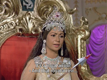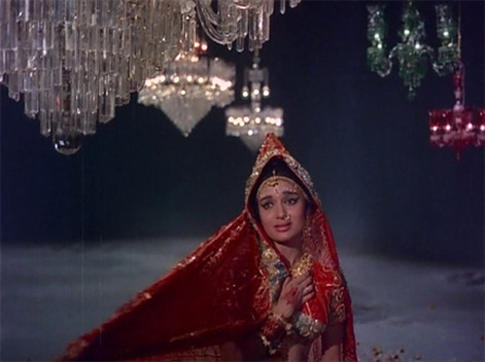 I don’t remember what all the films are: I think the one of the pirate is Karz, the chandeliers is Kanyadaan; Indrani Mukherjee in the tiara is Dharam-Veer, but the others I’m drawing a blank on.