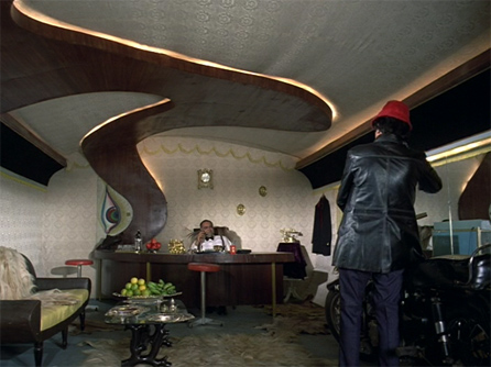 And so Mangal begins a life of crime, brought up and taught to steal by Suraj (Pinchoo Kapoor). He grows up to be a dashing young man (Rajesh Khanna). We meet him as he’s fleeing by motorbike from the police. He is saved when a truck’s rear door is lowered, enabling him to drive up into it and away. Inside the truck Suraj awaits in his mod mobile lair.