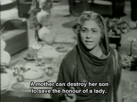 In which film’s climax did a mother shoot her own son dead for the sake of a woman’s honor (he was abducting her)…a couple of years before Mother India was made?