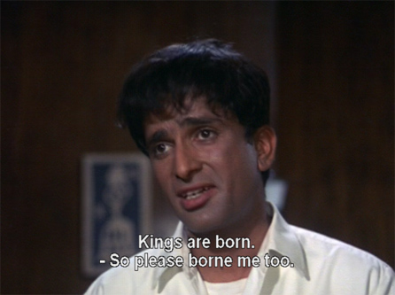 Anyway, Raju (Shashi Kapoor) is an (adult) orphan and a bit of a simpleton, who gets booted from the orphanage when he unwittingly insults a visiting Princess (Nanda) by forgetting that he’s NOT her prince in shining armor.
