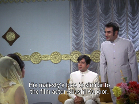 Also present is Prince Kunwar (Pratap Singh calls him “that cartoon Prince”), who is after Poonam for her money, and who had been with her on the orphanage visit. They both think that Raju looks vaguely familiar, but Pratap Singh explains it away.