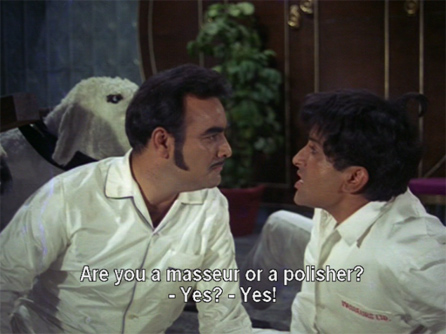 Fab! This Prince, Pratap Singh (Rajendranath) is not a very happy fellow, and Raju’s inept massage techniques don’t endear him at first (although the actors look like they are having trouble not breaking into laughter).