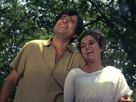 Appalled at her blunder, Poonam takes Malti and goes to the city to search for Raju. Raju, meanwhile, is a changed man. He no longer daydreams, and has a job. He has grown up, and gained some self-respect. Poonam quickly realizes that he won’t take her back unless he thinks she is poor herself, so she convinces him that she, too, was masquerading as royalty. They reunite happily to a snappy tune, “Tu Jungle Ki Morni.”