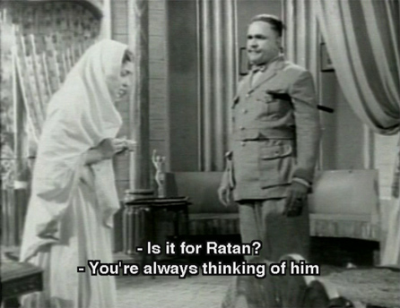 At this point, I want to smash Malti and Ratan’s heads together and do something nice for clever, unloved Amar. Also at this point, Suresh’s son Shekhar and daughter Rupa (Nalini Jaywant) arrive from England. Suresh meets them at the pier, as does Amar. Rupa looks around eagerly for Ratan.