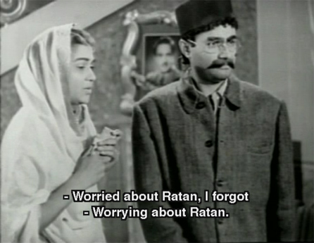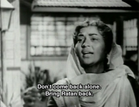 Even Captain Suresh is kinder to Amar than she is. Amar works as a clerk (“munimji”) at Suresh’s factory, and Suresh gives him the day off since it’s his birthday. Distraught over Ratan’s continued disappearance and stories of looting in the forest, Malti rushes to meet him.