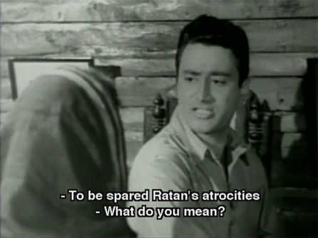 The film isn’t as bad as I’m making it sound, in fact I quite enjoyed it. The songs by SD Burman are lots of fun, especially one where Rupa and Raj try to teach Ratan how to sing (he brays like a donkey). Dev Anand’s performance is very good: Amar/Raj’s pain at his mother’s indifference is palpable, but so are his integrity and strength. He is well worth rooting for, and it’s always a treat to have an underdog to side with.