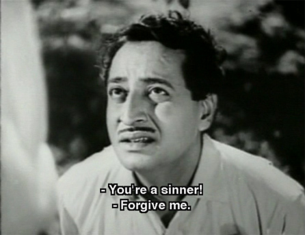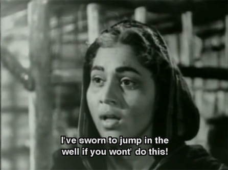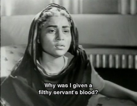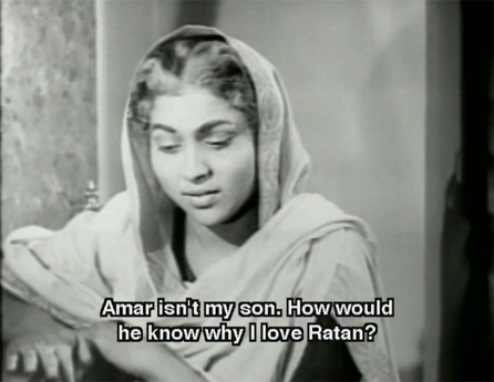 To ensure that her son got his just rights, she kept quiet and brought up her son—Ratan—as the legitimate son, depriving poor Amar of his rights (not to mention her motherly love). I think we’re supposed to feel sorry for her as she weeps.