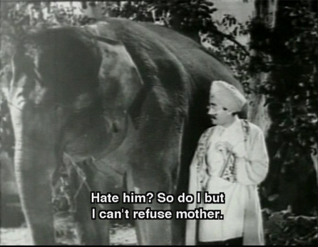 I think the tiger loses too. Arggghhh. Anyway, Rupa tells Raj that she loves him. Naturally he finds it hard to stay away from her after that, and their love blossoms. Ratan isn’t stupid—he’s evil, but not stupid—and he becomes jealous. Malti, who knows that Raj and Amar are the same person, begs him to leave Rupa alone for Ratan’s sake. Maternal Blunder #4 (you thought I forgot, didn’t you?). He protests, of course.