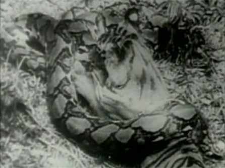 She summons Amar and tells him to tell Raj she is going hunting in a dangerous part of the forest. At this point the DVD skips about 5 minutes so I have no idea what happens, but it resumes with Raj and Rupa in the forest together, and some gruesome footage of a tiger fighting with an enormous python. It’s pretty grim.