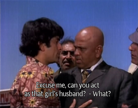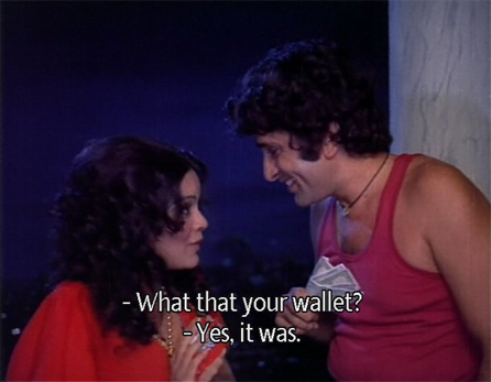 Shashi is v.v. fine here :-) And I think it is supposed to be his beating heart—he pulls it out from inside his shirt and then Zeenat flings it away and he has to run to retrieve it. Very funny :-) It does beat in his hand too which is a little gross though.