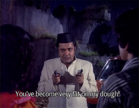 Oh thank Helen above, this movie is DA BOMB. I’m in the middle of watching it as we speak and it’s just so utterly fantastic and fun. My only complaint with it so far, and this is a small one, is that Raza Murad seems a little lost. He hasn’t had much to do yet, but he’s not making any impact – though with Pran as your dad and Ashok Kumar as one of your enemies, plus all the other people running around in this, it’s probably hard to stand out.