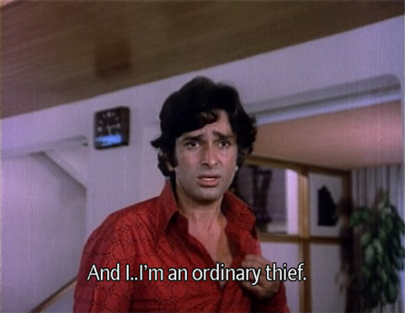 Years pass, and Inspector Kumar’s younger son Shyam (Raza Murad) is now a police officer as well. The elder (Shashi Kapoor) has grown up as Bholanath and is a petty thief like his mentor John. He is in and out of jail, as is his partner in crime Sharmili (Zeenat Aman). They meet up every evening to share the day’s take, although they are always trying to con each other too.