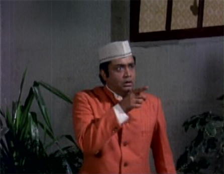 He plays Amarchand Rathod, leader of a gang who kidnaps children for ransom. When he is caught by Inspector Kumar (Pran) his men kidnap Kumar’s oldest son so that the Inspector won’t testify against him in court. It doesn’t work, and he is sentenced to life in prison after ordering his men to kill the boy.