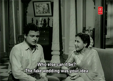 As much as the weepy Meena Kumari of the 1960s exasperates me, the sparkling Meena Kumari of the 1950s enchants me. In addition to sparkly Meena, this movie stars Kishore Kumar, Om Prakash and Gemini Ganeshan (Rekha’s father) so I figured it might be fun. And it is: mostly it’s a fluffy love story, with a lost child thread, but the songs by Hemant Kumar are wonderful (and subtitled!) and the performances solid.