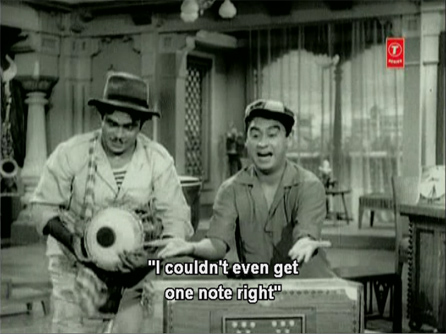 Kishore has a great song (“Gaana Na Aaya”) in here, where he pretends to be alternately a bad musician and a good one. It’s a tour de force of dancing and singing, and showcases Kishore’s musical and comedic talent like I’ve not seen anywhere else—it’s honestly worth the price of the DVD by itself.