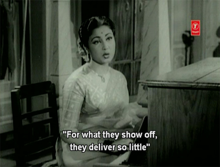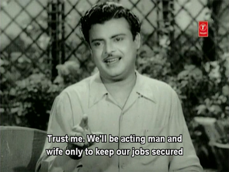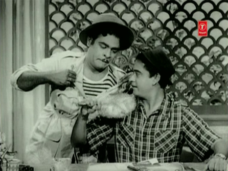 This is one of my favorite movies. The movie is an AVM production which to me was more famous for family tear-jerkers (I learnt better, later) like Bhabhi and was pleasantly surprised when I saw this. Meena Kumari in this movie reminded me of Katherine Hepburn in Bringing Up Baby in the sense that neither of them was usually cast as the fluffy, dumb, heroine. And Kishore Kumar was soooo good here, too! Guess he needed a director to keep him from going too far in his comic feats and that happened too rarely!