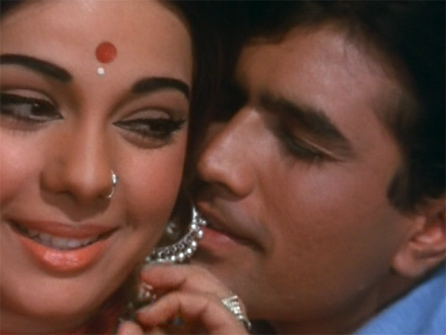 [Side note: Raj Khosla directed this, although it’s not his usual mystery-thriller. I love the way he always frames scenes in a way that makes the viewer into a voyeur: looking through a window, or into a mirror’s reflection, or a peephole.
