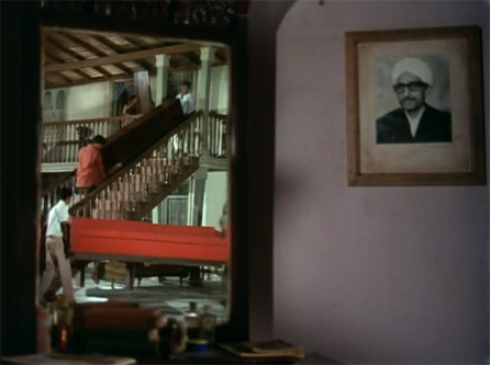 As Narendu sits sadly by his beloved gramophone (which Neela had banished to his room from the main hall, in favor of her radio), Viju and Neela move out lock, stock and barrel under the watchful eyes of Narendu’s father (and the mirror, see side note above).