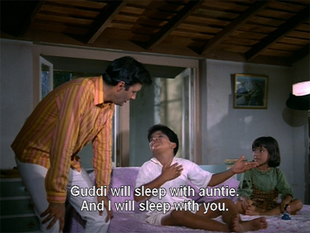 It must be noted that the scene related to the “no privacy” screenshot has Bindhu behaving extremely charmingly. She’s adorably laughing and enjoying the fun when Prem Chopra struggles awkwardly while trying to get the children out ! The movie really makes no effort to show intrusion of privacy at all, but from what I understood, making it look as if Bindhu’s nosy-parker mom’s spiteful brainwashing was the sole reason.