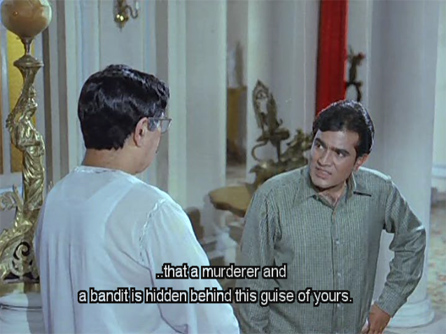 Luckily there are still good guys in the world: honest Aakash (Rajesh Khanna) and his equally honest brother Dinanath (Manmohan Krishna). Dinanath works for Dharamdas, and is completely fooled by his public facade. He is married with two children, and Aakash lives with them too. Aakash works for the city municipality, where he refuses all attempts to bribe him.