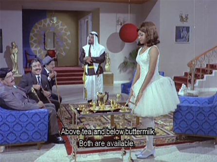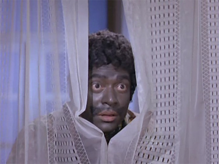 She seduces Dharamdas with another fabulous song, “Aaja O Mere Raja” while Shambhu keeps watch (now in blackface posing as her servant):