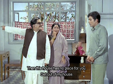 He rips into them, but when he gets home he finds his brother very angry with him. Dharamdas has called Dinanath to complain about Aakash’s behavior, and Dinanath—still believing that Dharamdas is a good man—demands that Aakash apologize. Aakash naturally refuses, and Dinanath throws him out of the house.