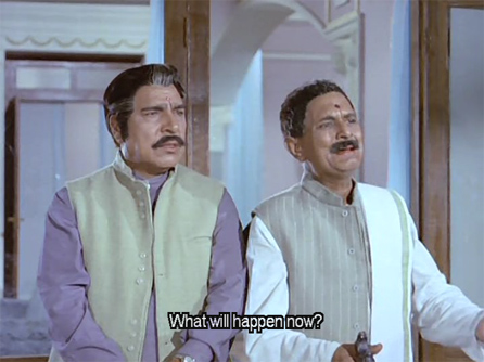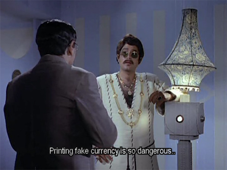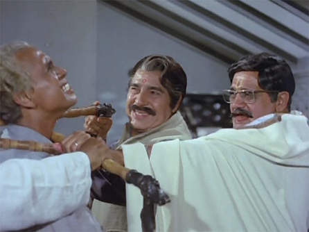When Aakash discovers that his brother is missing, he knows that Dharamdas is at the bottom of it. He comes up with an elaborate plot to bring down Dharamdas, Sevaram and Satyanarayan—using their greed as bait, and with the help of Shambhu and Chanda. Hindi films really do not get any more entertaining than this. I’ve gone way overboard with screen caps, but believe me—I edited.