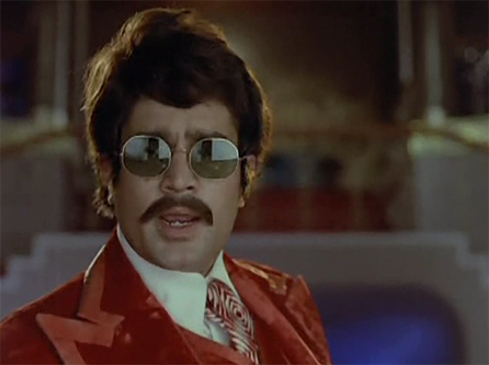 “Apna Desh” was a remake of the Tamil hit “Nam Naadu” (roughly translates as “Our Country” which is also what Apna Desh means). The Tamil version starred the reigning superstar MGR (who went on to become a very successful Chief Minister of Tamil Nadu), and was one among several politico-filmi vehicles that propped his squeaky clean image in the Tamil film world. MGR was equally a good samaritan in real life (as Chief Minister he pioneered the free midday meal scheme for school kids), and this movie went on to further build his cult status. It’s therefore totally understandable, that what looks quite logical in Tamil, with its hidden political message, looks totally goofy in Hindi cinema (though RK himself later went on a similar shortlived political career graph).