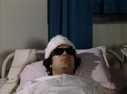 Rajesh Khanna donating blood with a fur cap and sun glasses on is actually a spoof on the late MGR – famous south indian actor in tamil movies and later on the Chief Minister of that state.